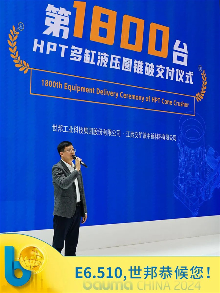 11月27日,值此上海宝马展举办之际,世邦HPT多缸液压圆锥破迎来了第1800台的交付仪式。设备将远赴江西客户现场,助力客户项目生产。